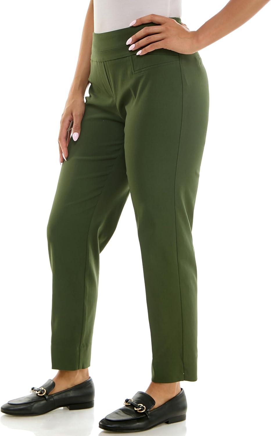 Zac & Rachel Women’s Pull-on Ankle Length Pants with Millennium Fabric(Kombu Green)